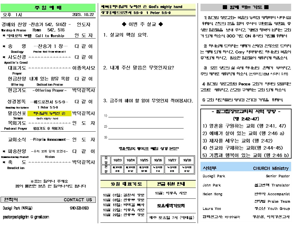 2023년 10월 22일 주일 주보