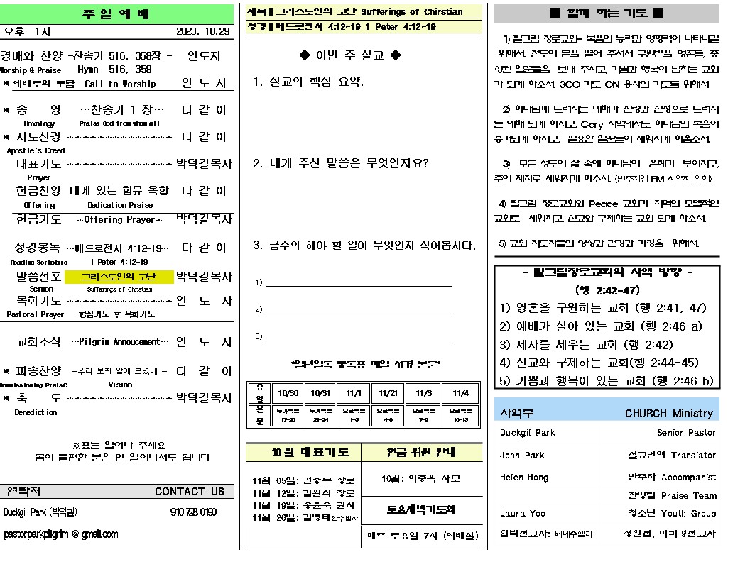 2023년 10월 29일 주일 주보