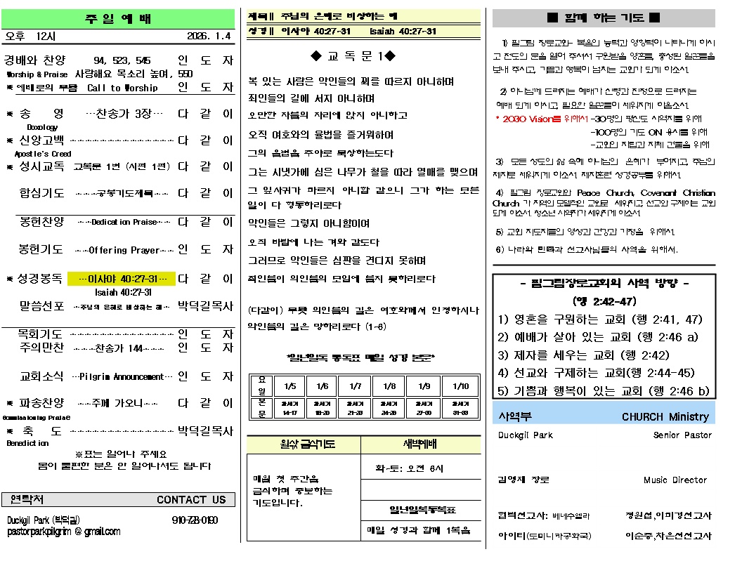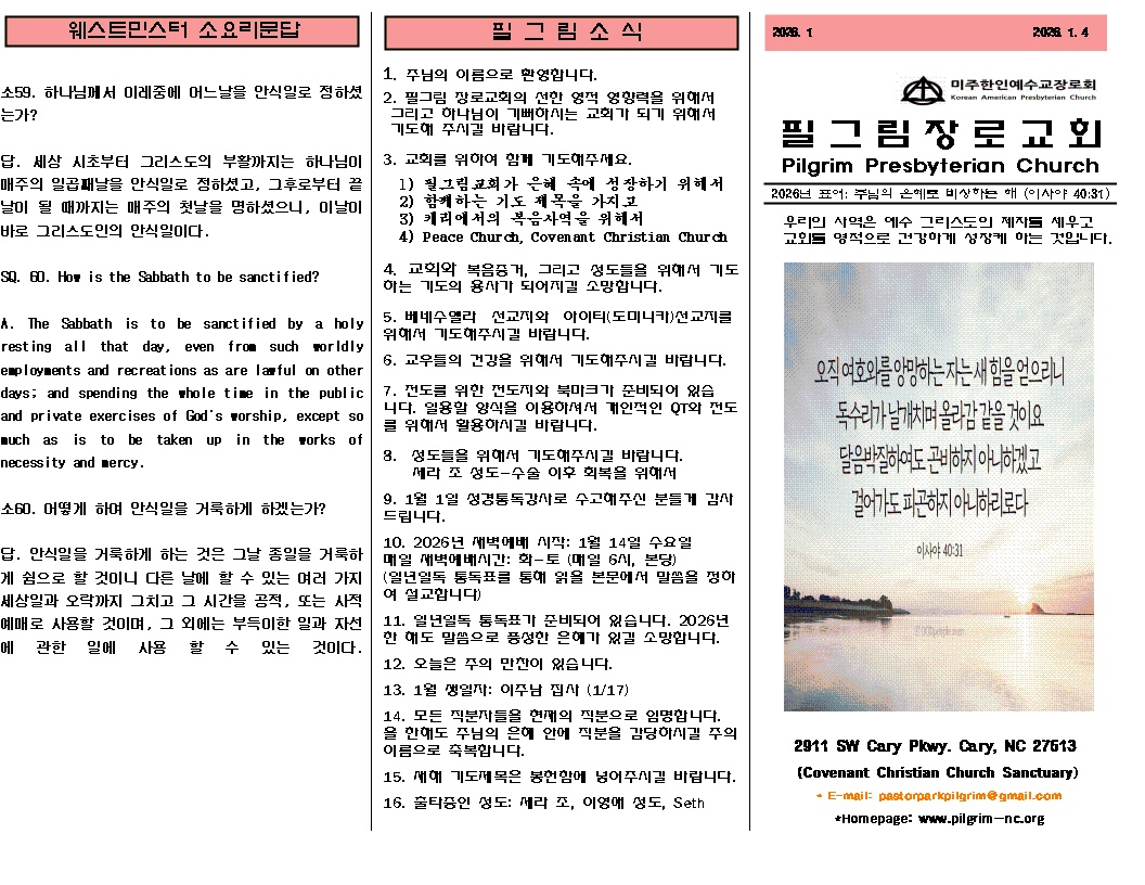 2026년 1월 4일 주일 주보