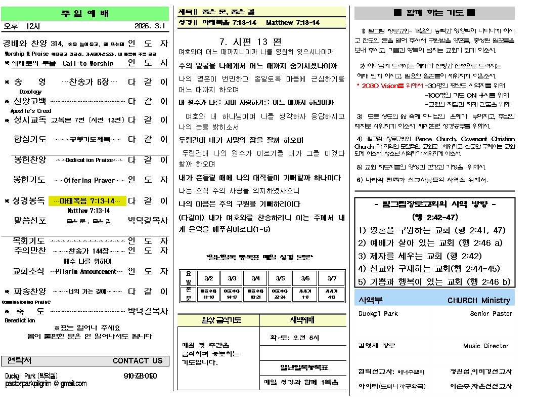 2026년 3월 1일 주일