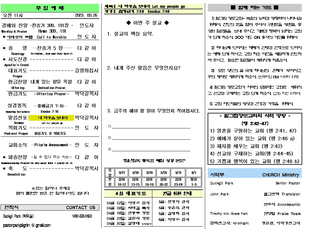 2023년 3월 26일 주일 주보