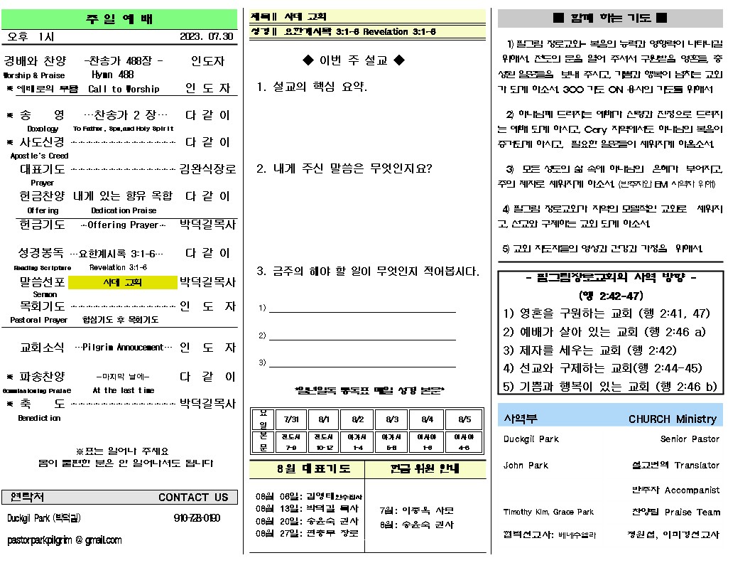 2023년 7월 30일 주일 주보