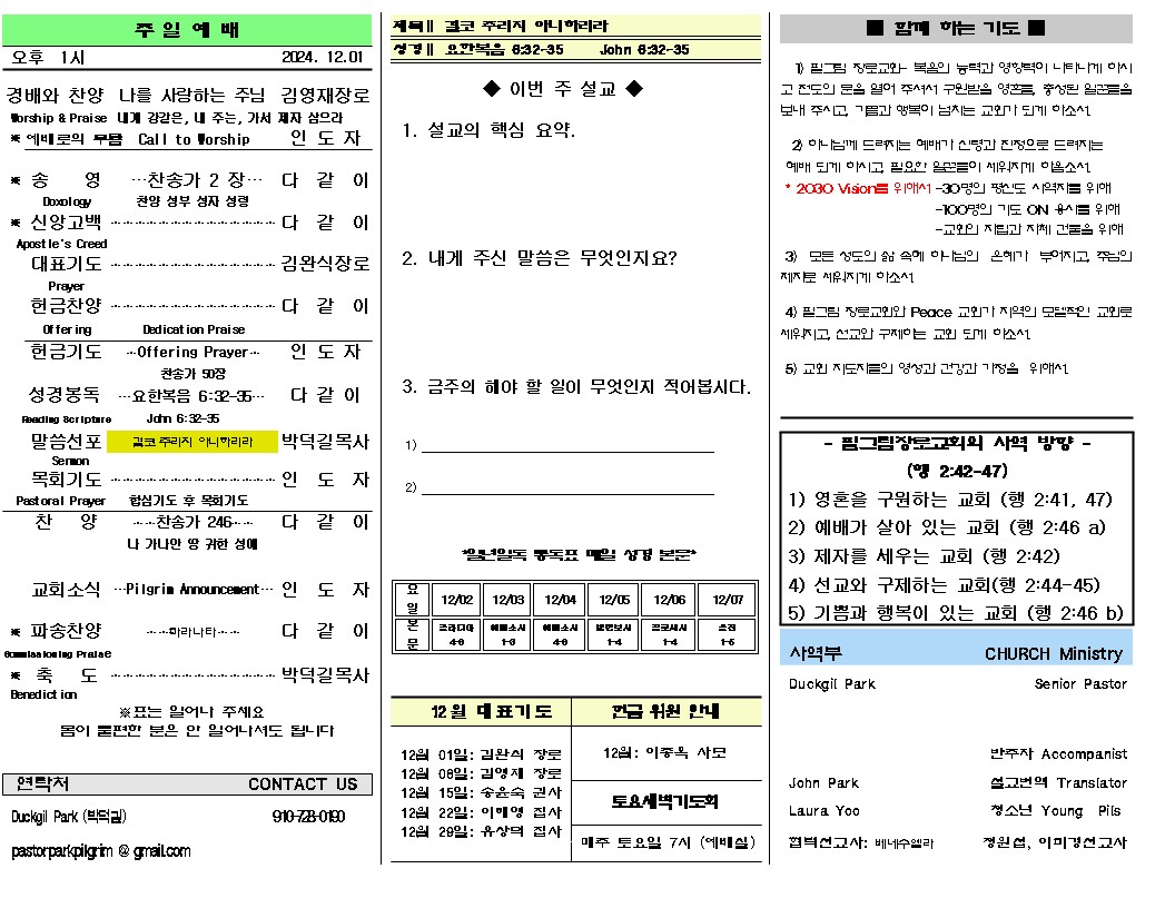 2024년 12월 1일 주일 주보